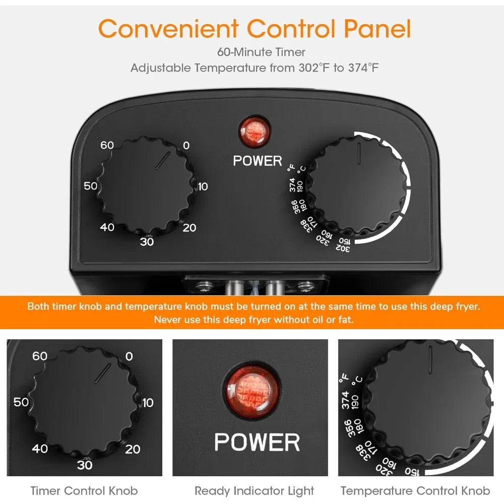1700W Electric Deep Fryer, 3 Baskets, 5.3QT Capacity, Home Use with Large Oil Tank and Transparent Lid